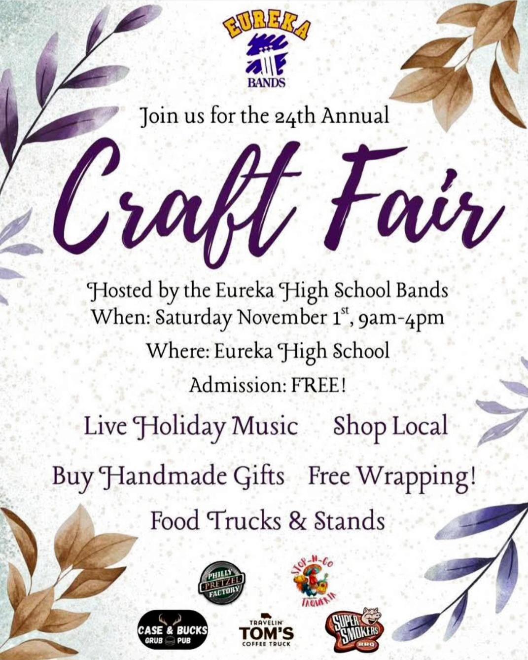 We are planning our 1st indoor craft fair at Eureka High School on Nov. 1. If you plan on coming please stop by and hi! Look forward to seeing you!